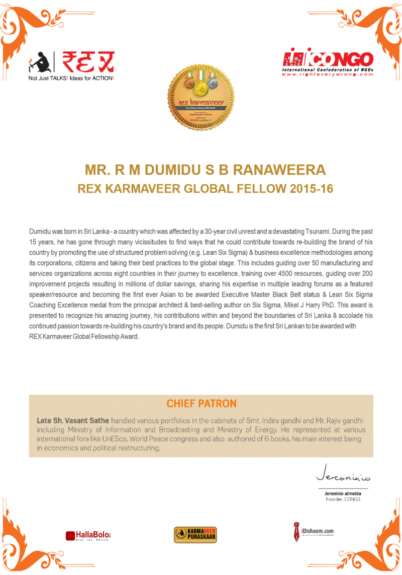Receiving Commendation Award for Dialog Lean Six Sigma Initiative at Dialog Awards 2012