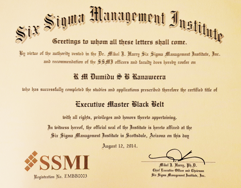 Receiving Dialog Lean Six Sigma Master Black Belt Certification from Dr.Hans Wijaysuriya- GCEO, Director Dialog Axiata PLC.